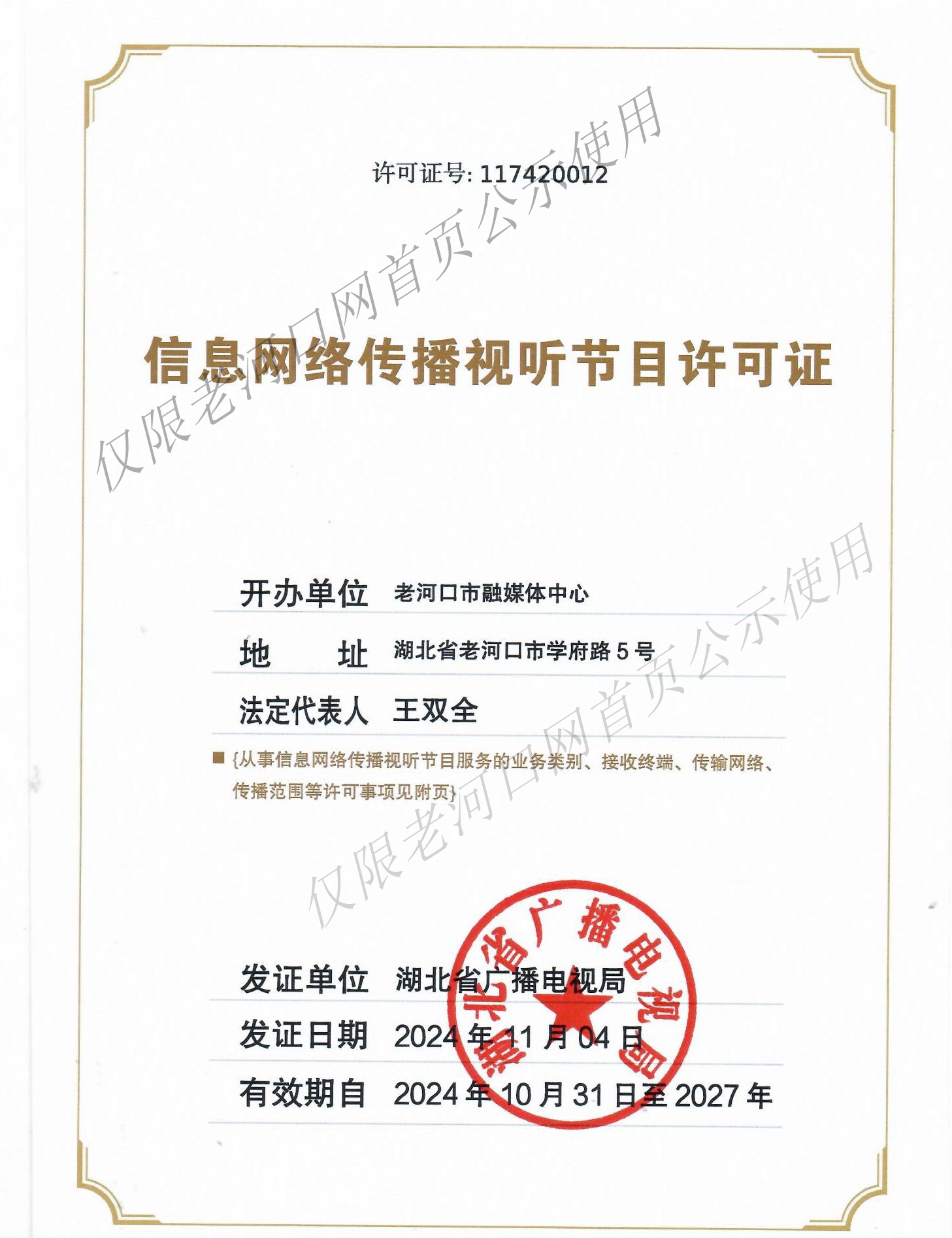 信息网络传播视听节目许可证号117420012